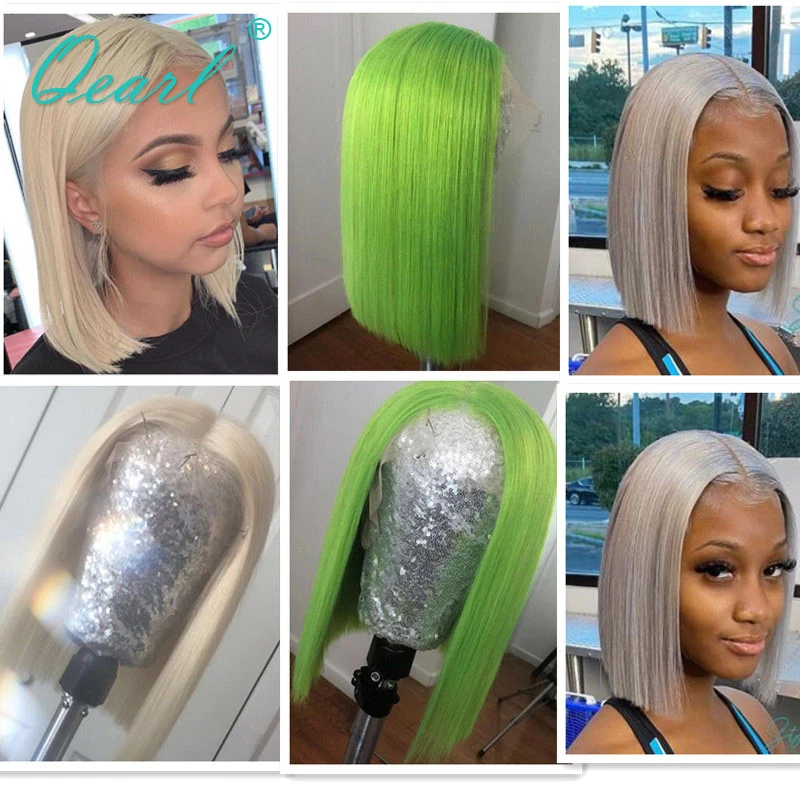 Straight Short Bob Cut Lace Part Wig 60 Purple Green Platinum Blonde Human Hair Lace Frontal Wigs Virgin Hair 13x1 150 Qearl Human Hair Lace Wigs Aliexpress